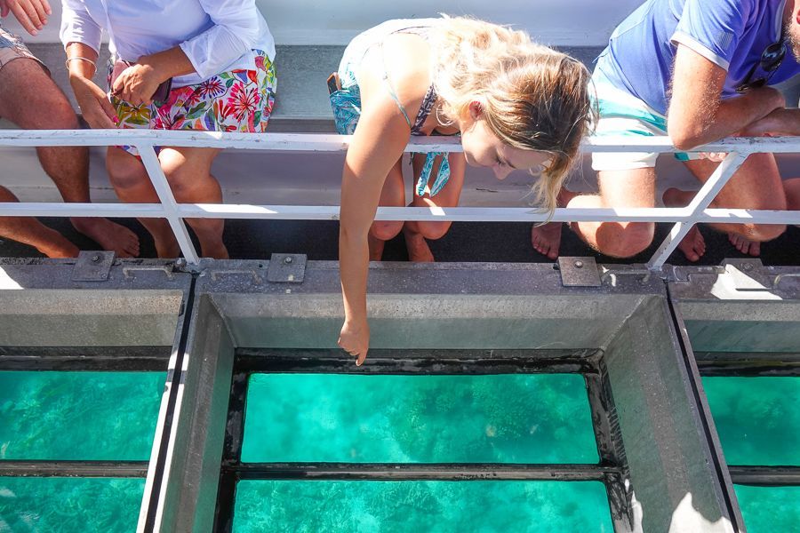 - Guided glass bottom boat tour to explore surrounding reef