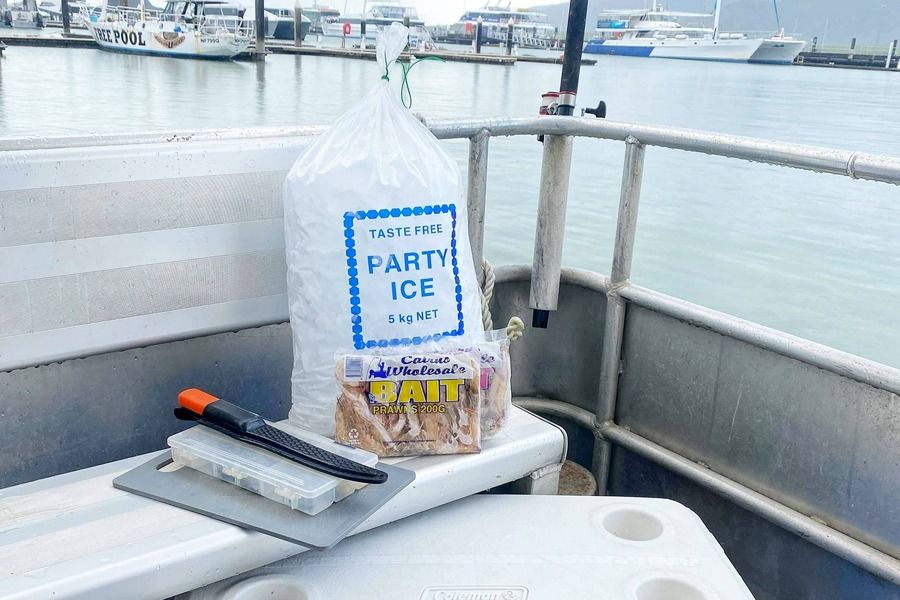 Fishing gear includes fishing Rods (1x pp), bait (1 per 4 pax), ice (1 per 4 pax) & esky.