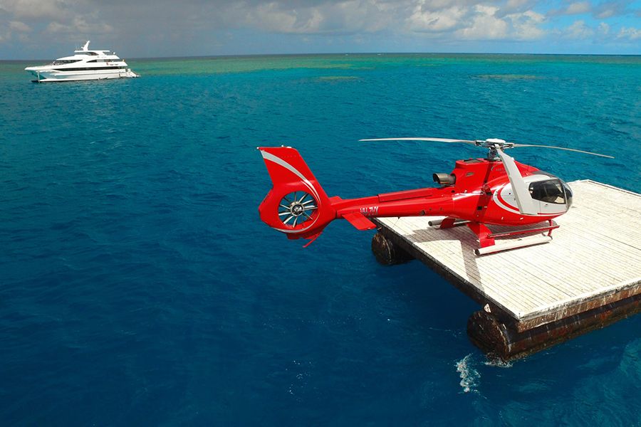 Cruise to the Outer Reef aboard a 35-metre, airconditioned superyacht, visiting two reef sites teeming with unique corals and vibrant marine life throughout the day. At your second reef destination, board the luxury Nautilus Aviation Helicopter for a blissful scenic flight. The ideal way to see everything the reef has to offer!