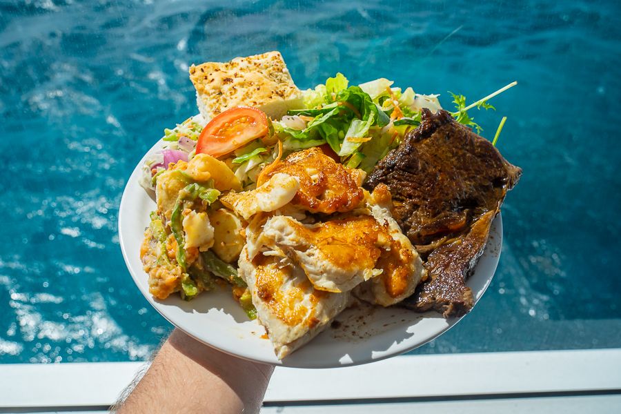 - Aussie BBQ lunch with steak, prawns and tropical salads