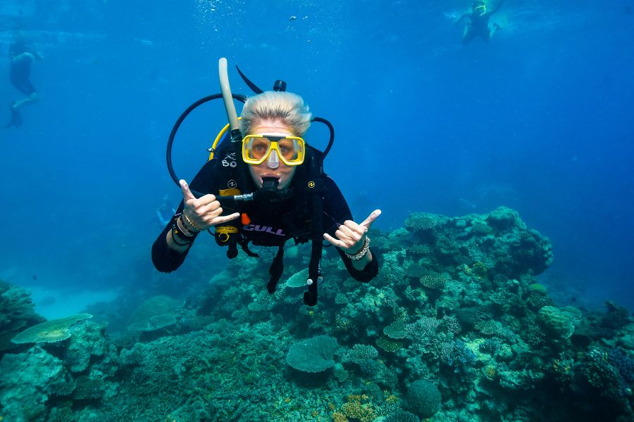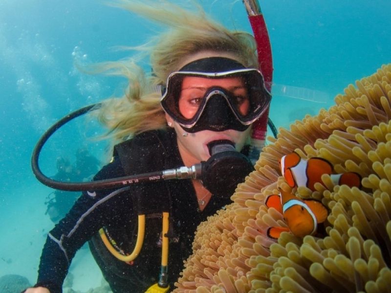 Dive in with either an introductory or certified scuba dive experience. Whether you're a pro or an avid learner, immerse yourself in and amongst the coral reefs and rub shoulders with green sea turtles, abundant fish life, giant clams, colourful corals, bright starfish and more!