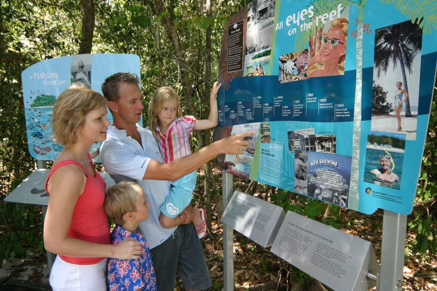 Green Island is suitable for taking a pram, with ample room on the boat and on the platform. The beach at Green Island has quite soft sand and therefore not practical for prams to be taken onto the beach area. There are however extensive wooden boardwalks that take you through the island’s rainforest, which are suitable for prams.