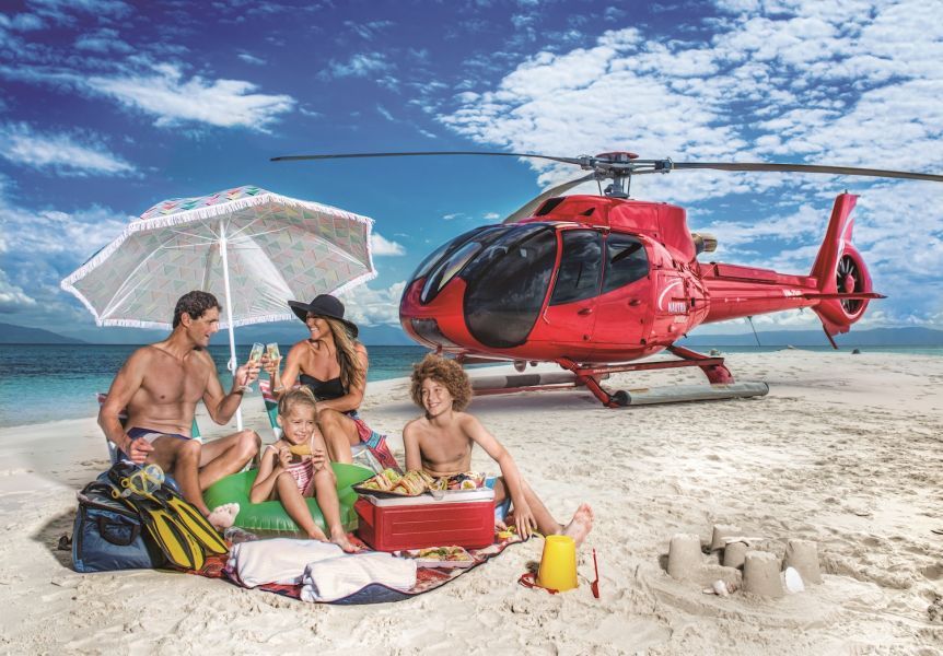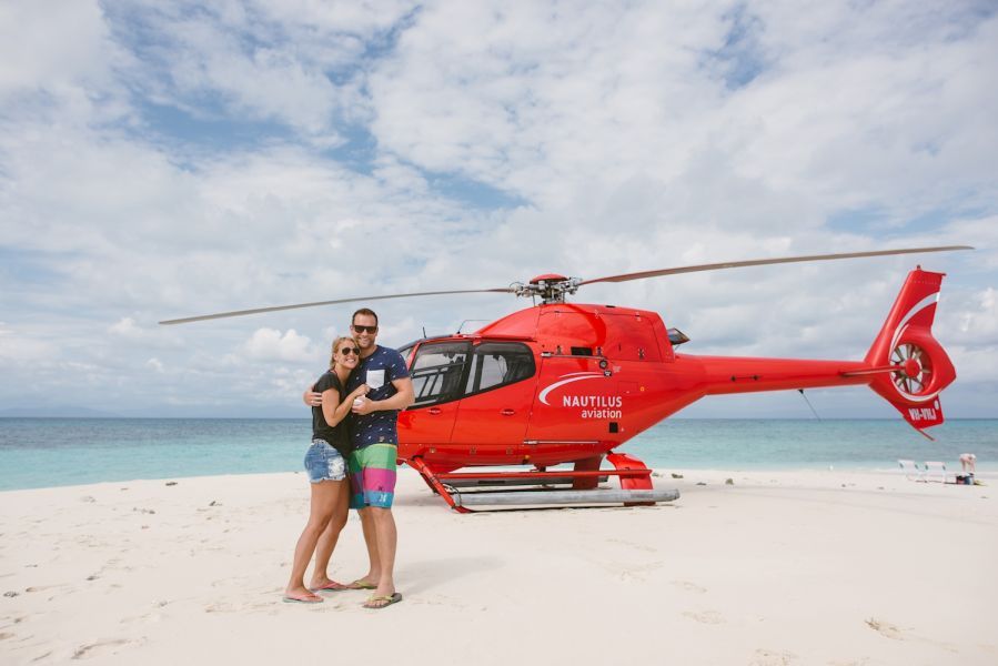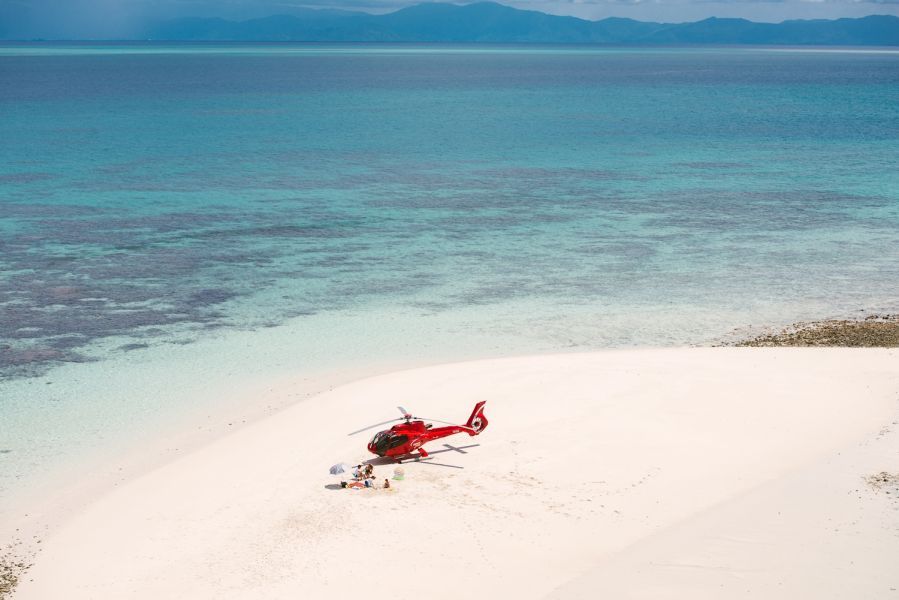 - Exclusive scenic helicopter ride to and from Vlasoff Cay