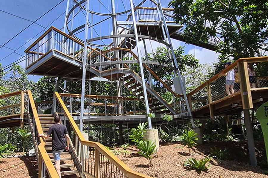 Free-roaming animals and birds, elevated boardwalks and conditions simulated to represent the rainforest environment can be dangerous. Children must be supervised by an adult at all times.