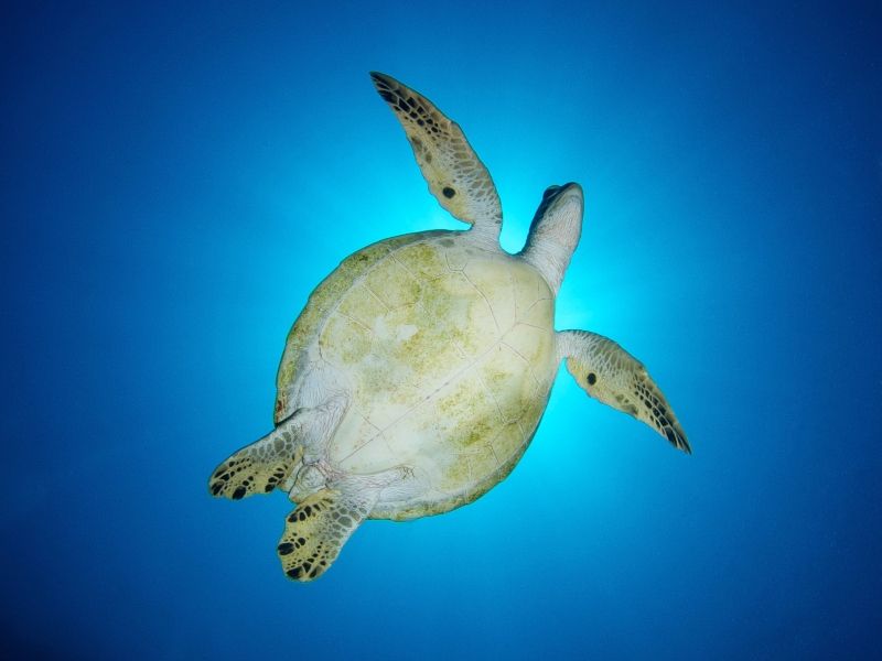 There are black and white tipped reef sharks on the reef, but they are very shy. They pose no threat to humans and we count ourselves very lucky if we see them! Seeing reef sharks is considered a good sign of a healthy underwater ecosystem.