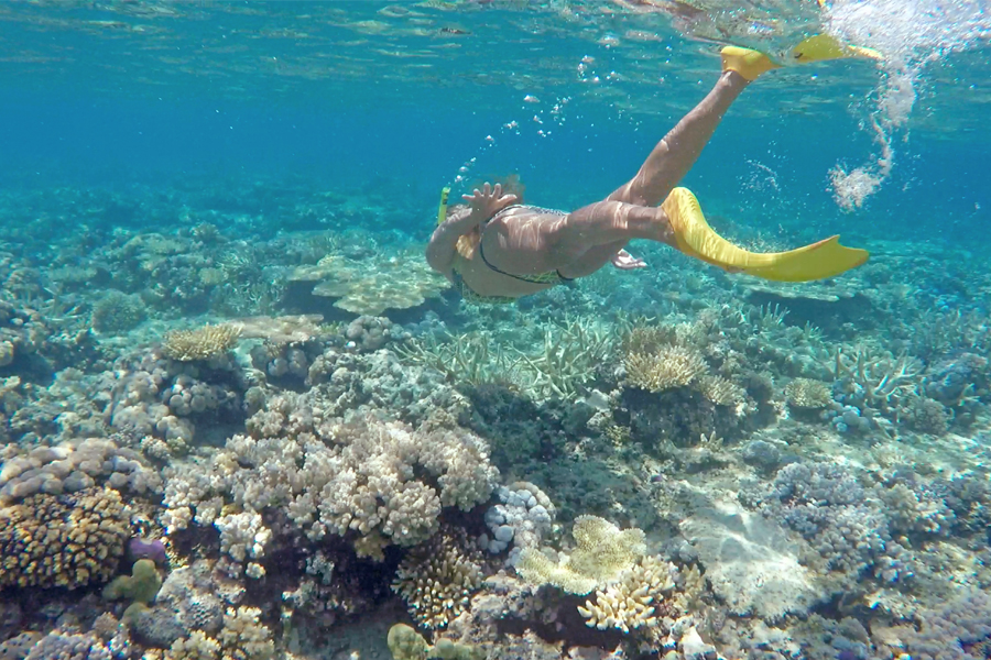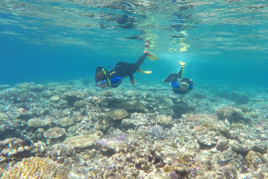 Enjoy unlimited snorkelling at two amazing locations selected carefully from our 17 private moorings on the Great Barrier Reef. Take advantage of the free guided snorkel tour and let our guides point out some amazing animals and funny sea creatures along the way. All of your snorkel gear and stinger suits are provided, as well as flotation devices for those who need it. The back of ReefQuest has an underwater platform, making it easy to get in and out of the water to ensure everyone is able to enjoy the fun or snorkelling.