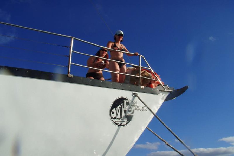 Rum Runner is a 20m Fiberglass Yacht. IT comes with a shaded deck, a dive platform, showers, and a floating dock.
