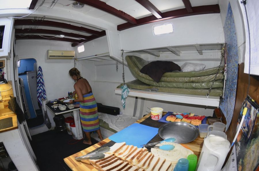 Rum Runner will accommodate up to 16 guests in multi share twin single bunk areas, semi-private twin single bunk cabins, and a 4-share single bunk cabin. She is the equivalent of a mutli-share hostel, just on water.