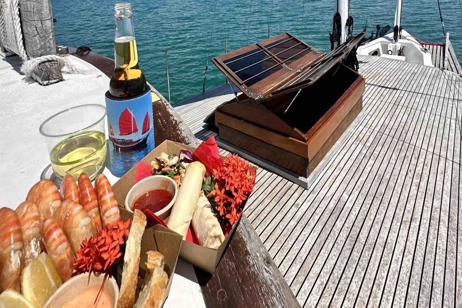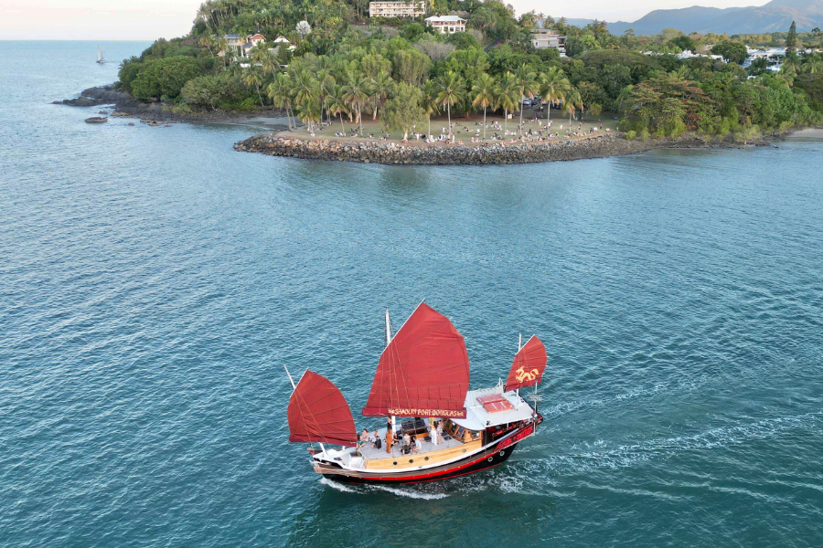 Delight in an amazing lunch onboard Shaolin's traditional Chinese Junk boat from Port Douglas Marina!