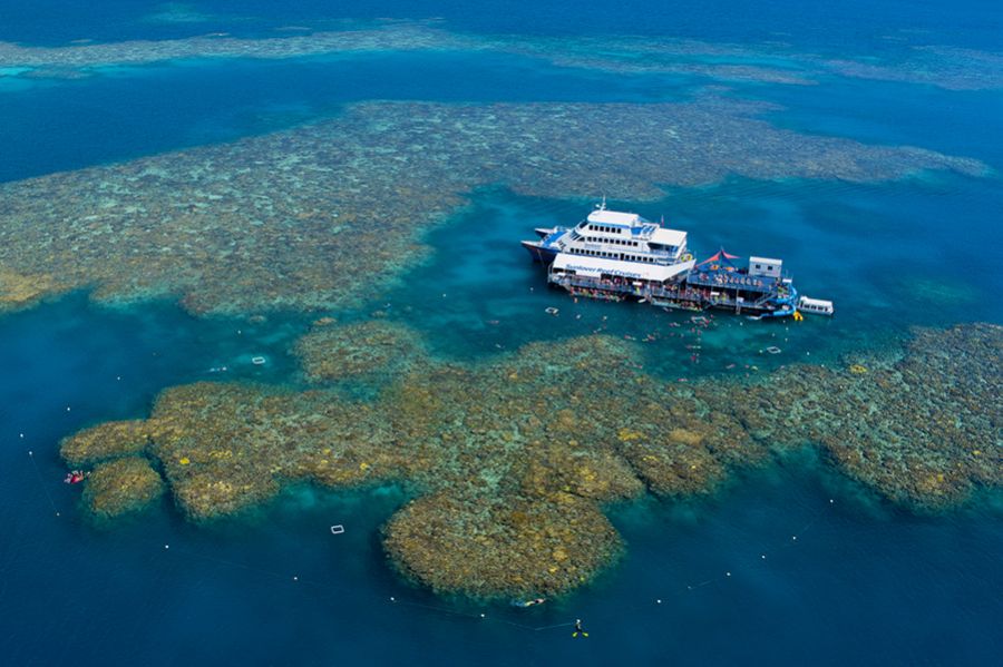 Aerial image of the Moore Reef pontoon, Cairns Outer Great Barrier Reef