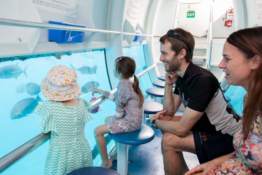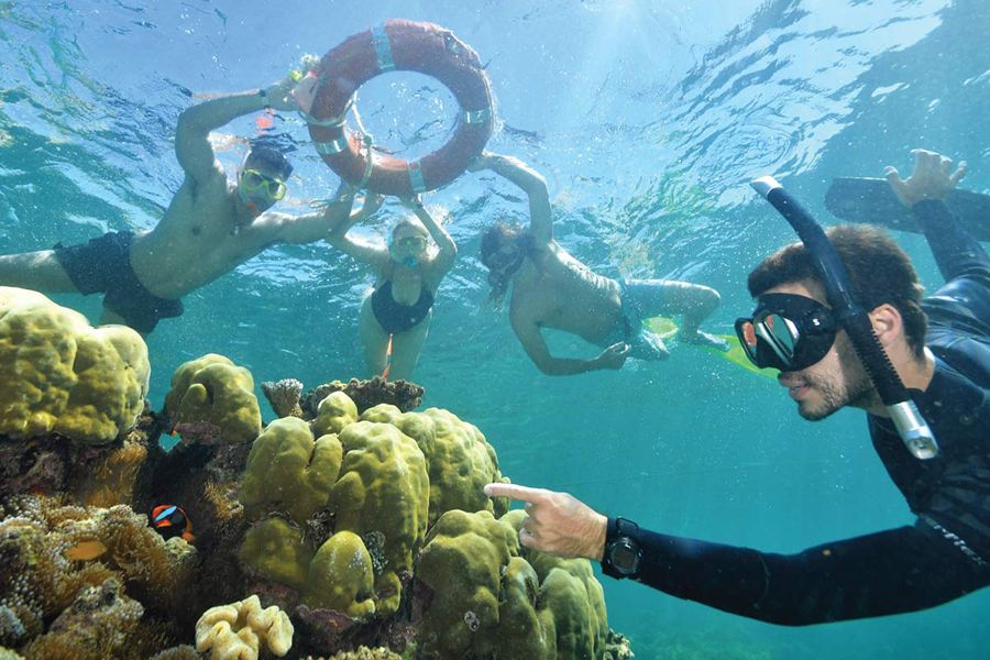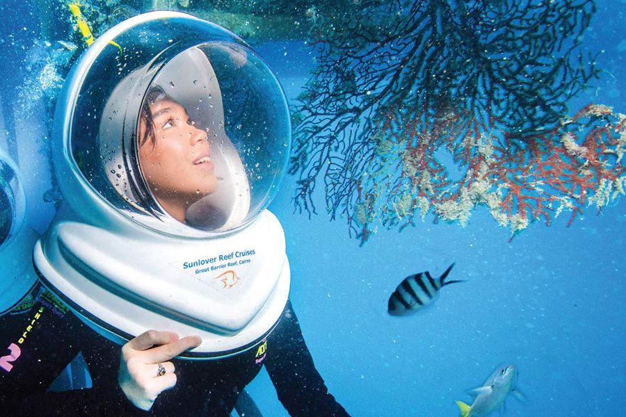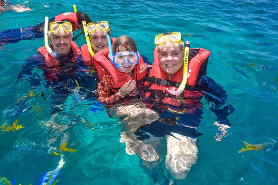 • Add to your reef tour with a guided snorkel tour, Seawalker helmet dive, introductory and certified scuba dives, or scenic helicopter flight (additional costs)