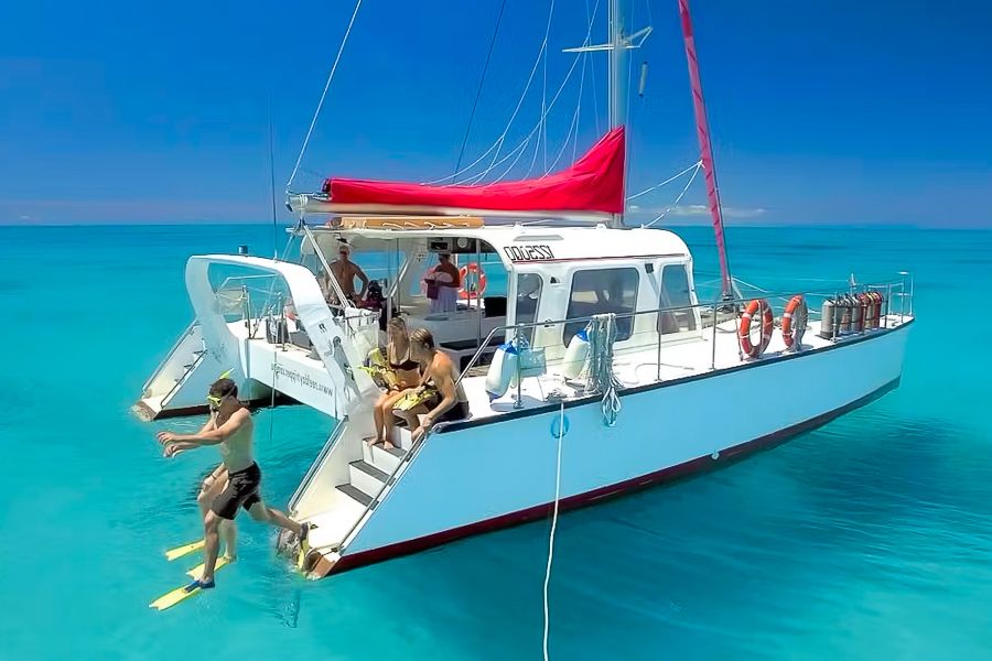 Combine a day of authentic sailing with your underwater exploration of the Great Barrier Reef! These sailing tours offer some of the best Cairns adventures. Spend the day sailing through the turquoise Coral Sea and doing some snorkelling or scuba diving in the Great Barrier Reef. The tropical scenery, action-packed itinerary, and stunning reef sites make these sailing trips some of the best tours of the Great Barrier Reef from Cairns.