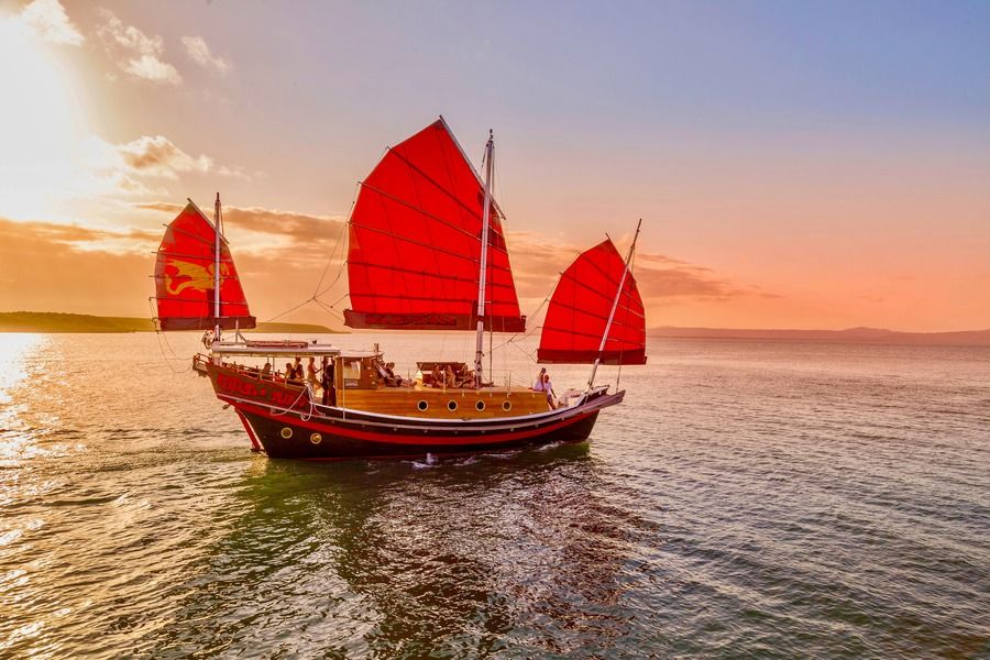 Spend a magical evening onboard Shaolin's traditional Chinese Junk boat from Port Douglas for a sunset sail to remember!